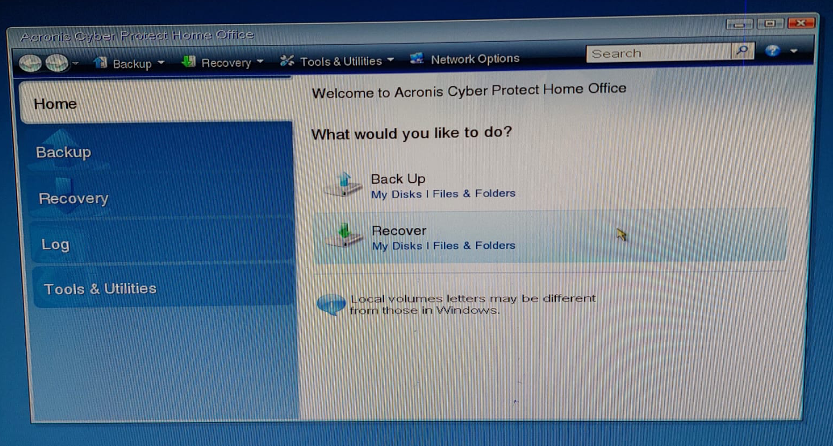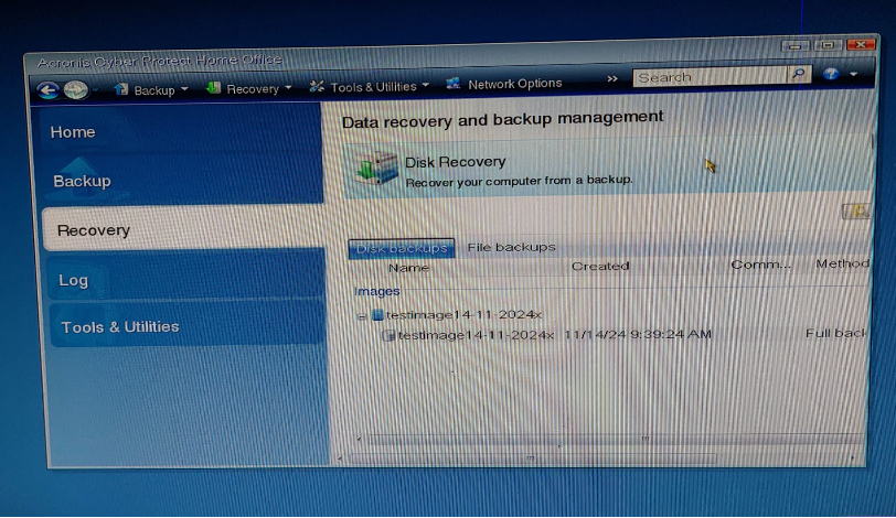 Acronis açıldığında “Recovery” seçeneği üzerinden işlem başlatılır.