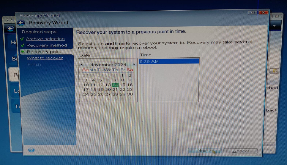 İmaj alınma tarihine göre uygun geri yükleme noktası seçilir.